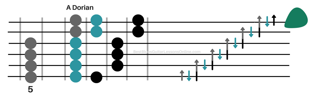This is what you should do to incorporate the A dorian scale to finally build that speed in your blues guitar solos: Try to play A dorian over the I and IV chord of a 12 bar blues progression in the key of A. In the first video of the article, you can see me perform this strategy and get a real hang of how this will sound and affect your speed in your blues guitar solos.