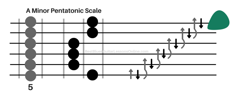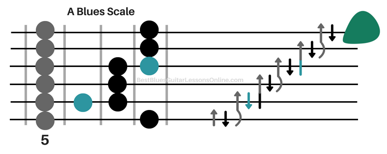The biggest problems with both the pentatonic scale and the blues scale for building speed are the facts that the picking hand doesn’t have any efficient movements while performing the patterns. Every blues guitarist who improvises guitar solos will almost never look at the picking hand. Your picking hand will be left alone completely during a solo so building this hand into an efficient machine is key in letting it flow as smoothly as possible.