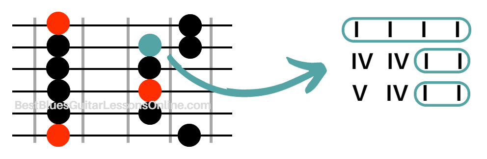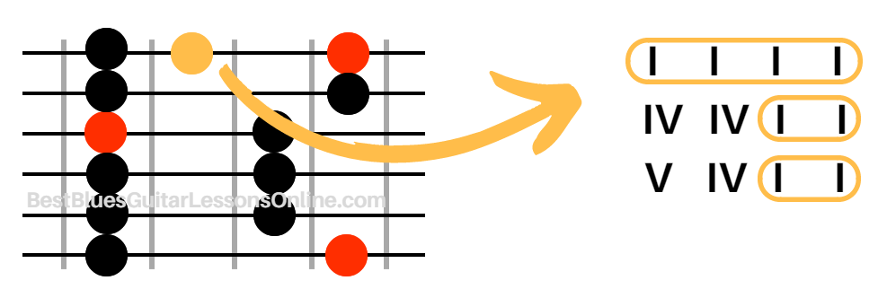 Just like you did with the characteristic note from dorian over the I chord in a standard 12 bar blues, it is important that you use the characteristic mixolydian note also over the I chord. So to create a mixolydian sound you incorporate the added mixolydian note in your blues solos over the I chord.